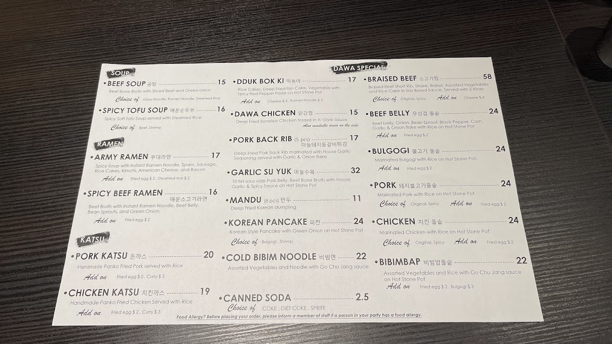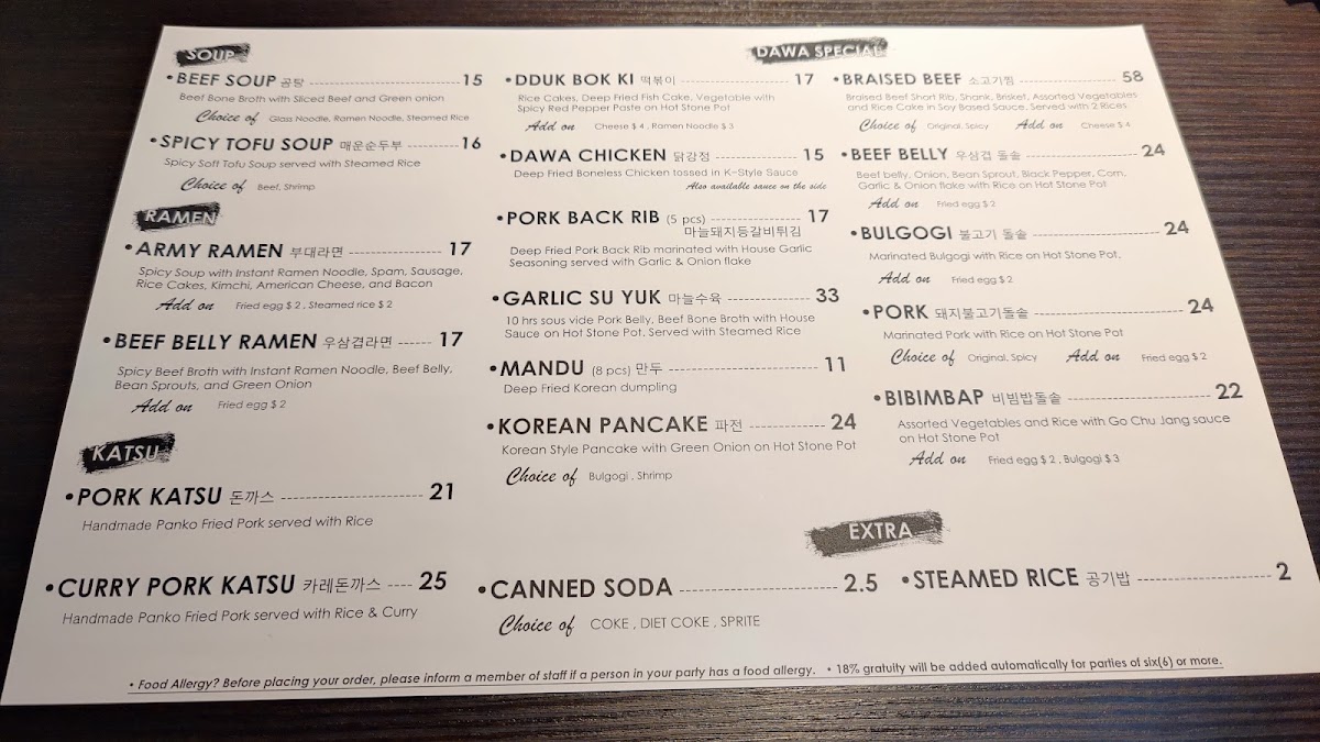 Welcome to Dawa Kitchen, a delightful culinary gem nestled in the heart of Garden Grove, California. Located at 12506 Westminster Ave, this restaurant has quickly become a beloved destination for food enthusiasts seeking authentic Korean flavors fused with a contemporary twist.